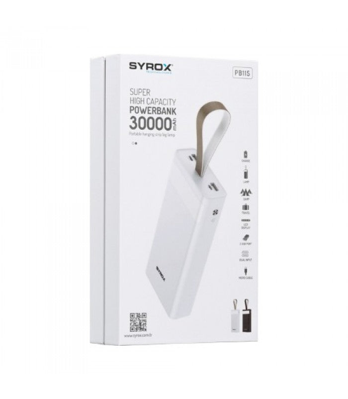 - بفضل منتج Syrox الجديد الذي يتمتع ببطارية عالية الطاقة بسعة 30000 مللي أمبير في الساعة، يمكنك استخدامه أثناء السفر أو في الإجازة أو في العمل أو في المنزل وما إلى ذلك.