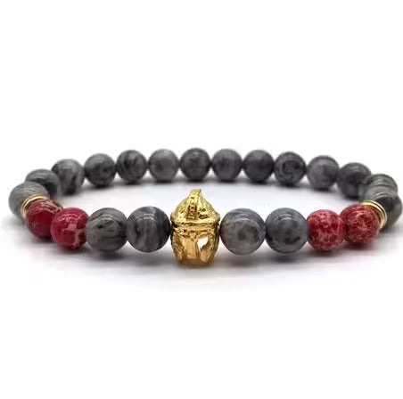 سوار على شكل رأس محارب من الخرز الرمادي والأحمر (EGBT151)