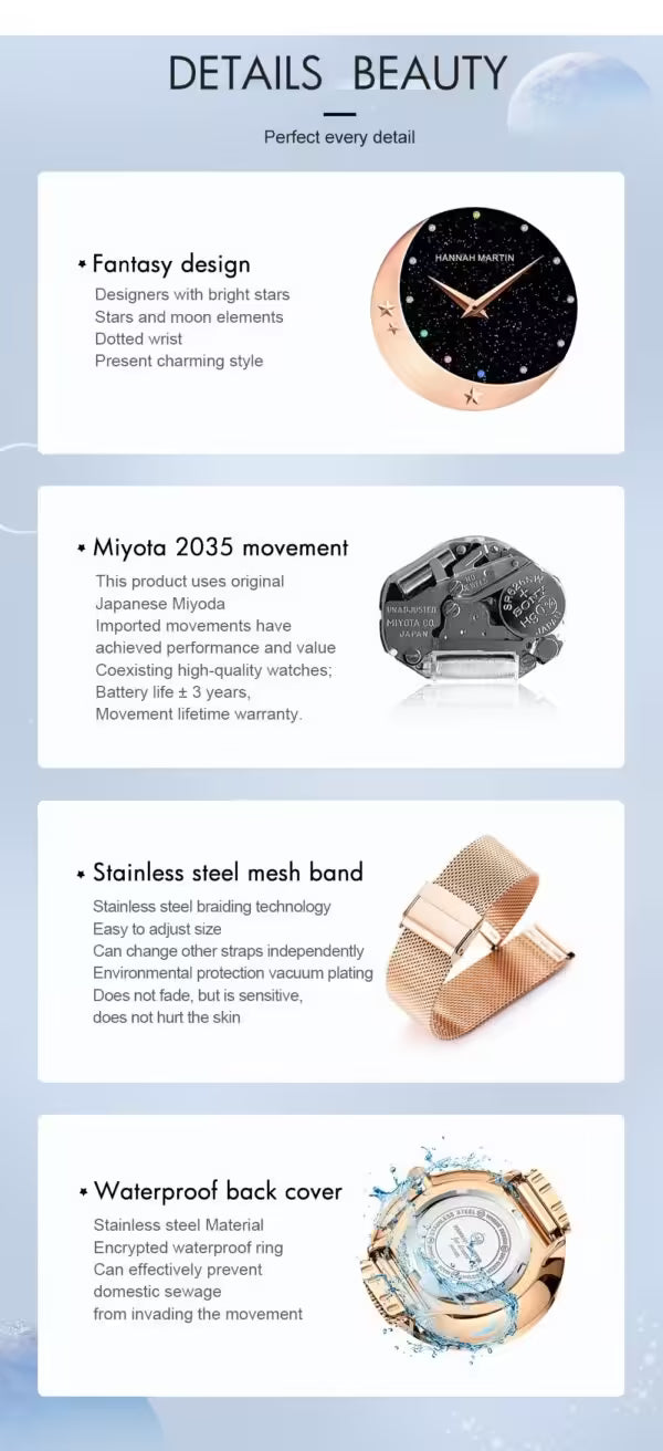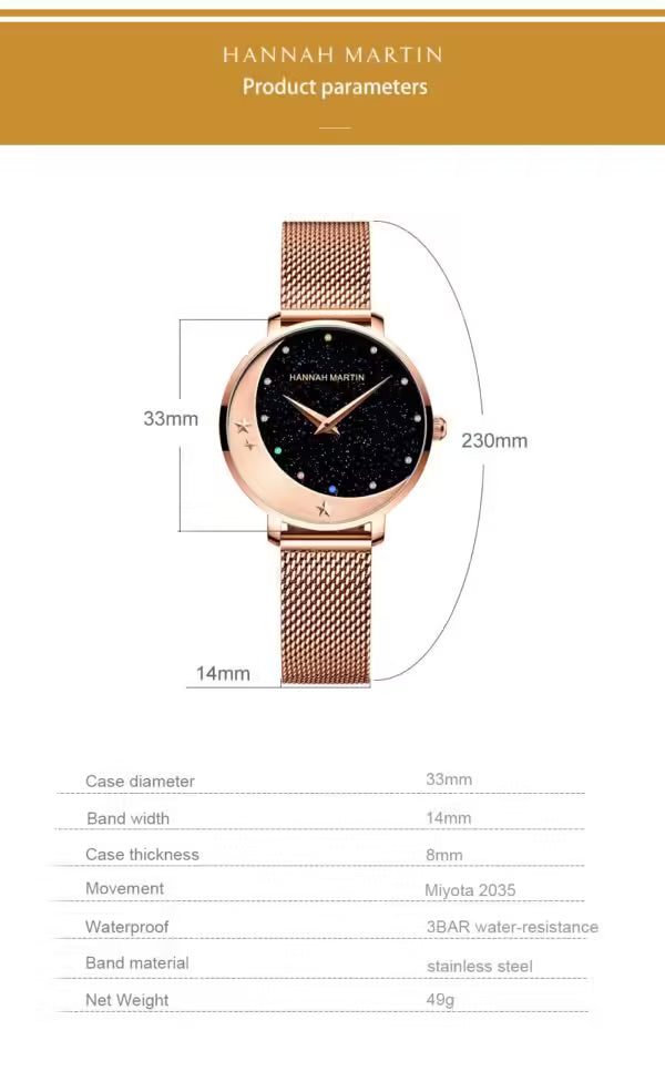 ساعة هانا مارتن النسائية المصنوعة من الفولاذ المقاوم للصدأ موديل (HM-13342)