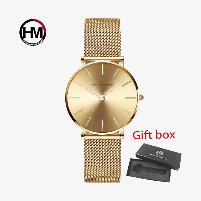 ساعة هانا مارتن النسائية المصنوعة من الفولاذ المقاوم للصدأ موديل HM-CH36 باللون الذهبي