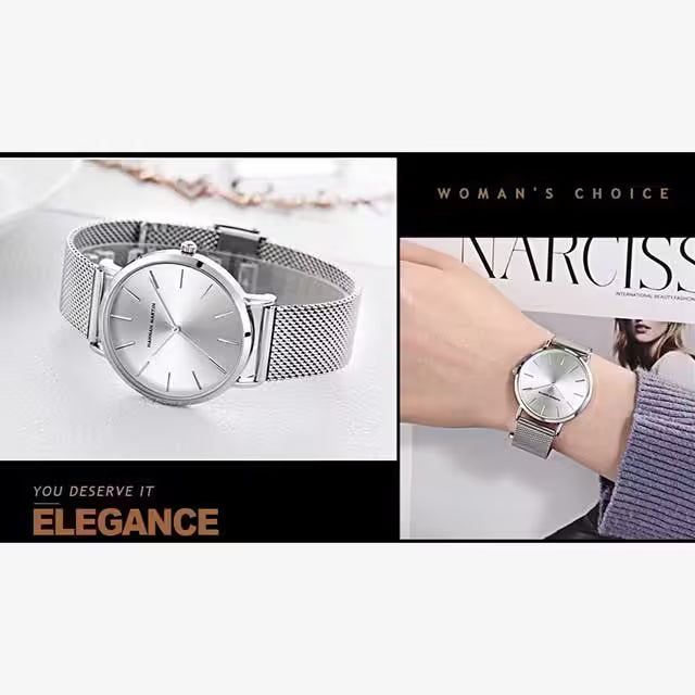ساعة هانا مارتن النسائية المصنوعة من الفولاذ المقاوم للصدأ موديل (HM-CH36 فضي)