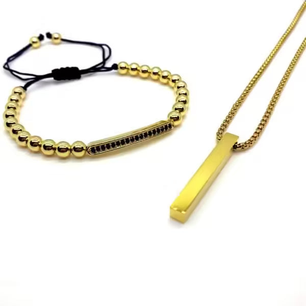 2 قطعة/المجموعة من سوار أنبوبي طويل وقلادة مستطيلة (EGBT329)