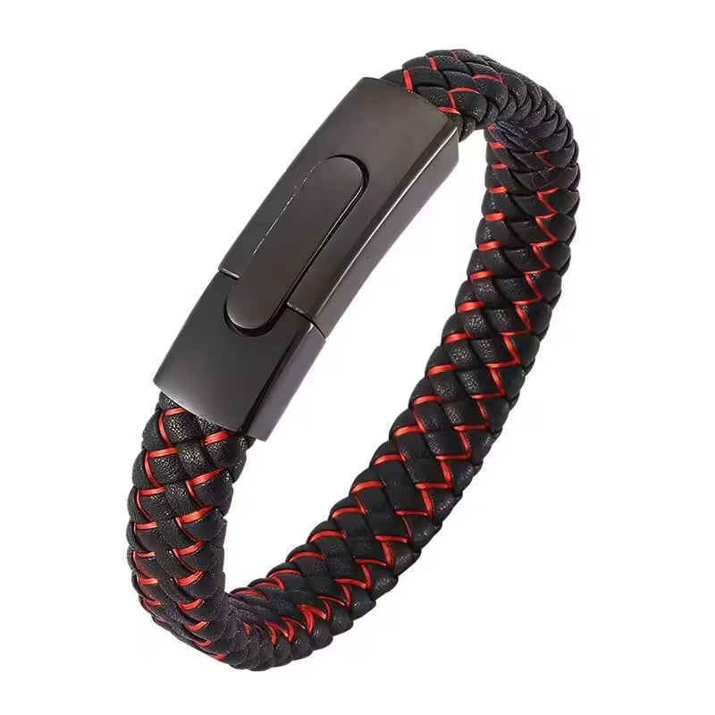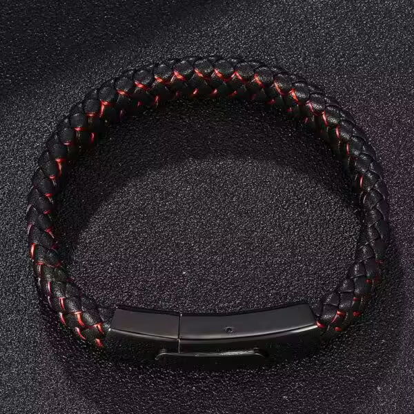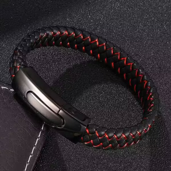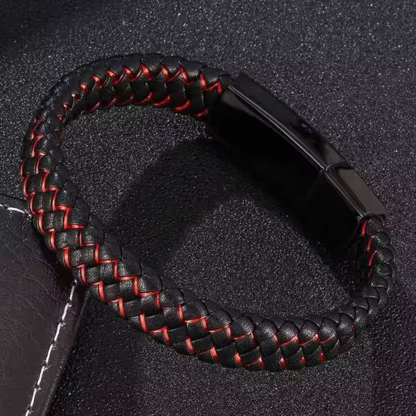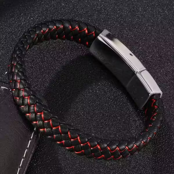 سوار جلدي رجالي بقفل مستطيل باللونين الأسود والأحمر (EGBT104)