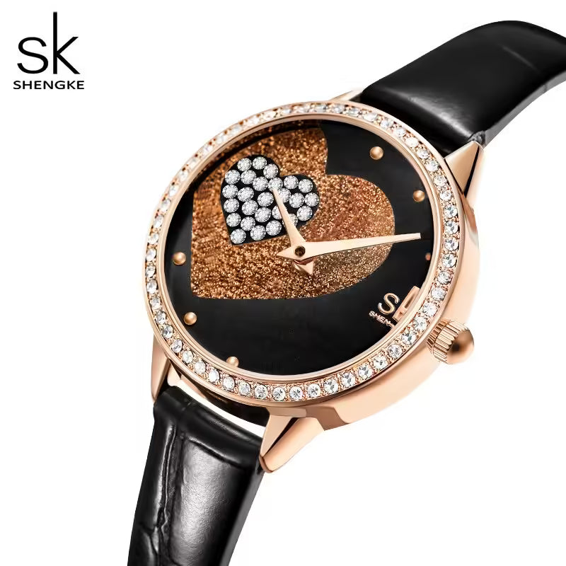 ساعة SK النسائية المصنوعة من الجلد والفولاذ المقاوم للصدأ (K0168)