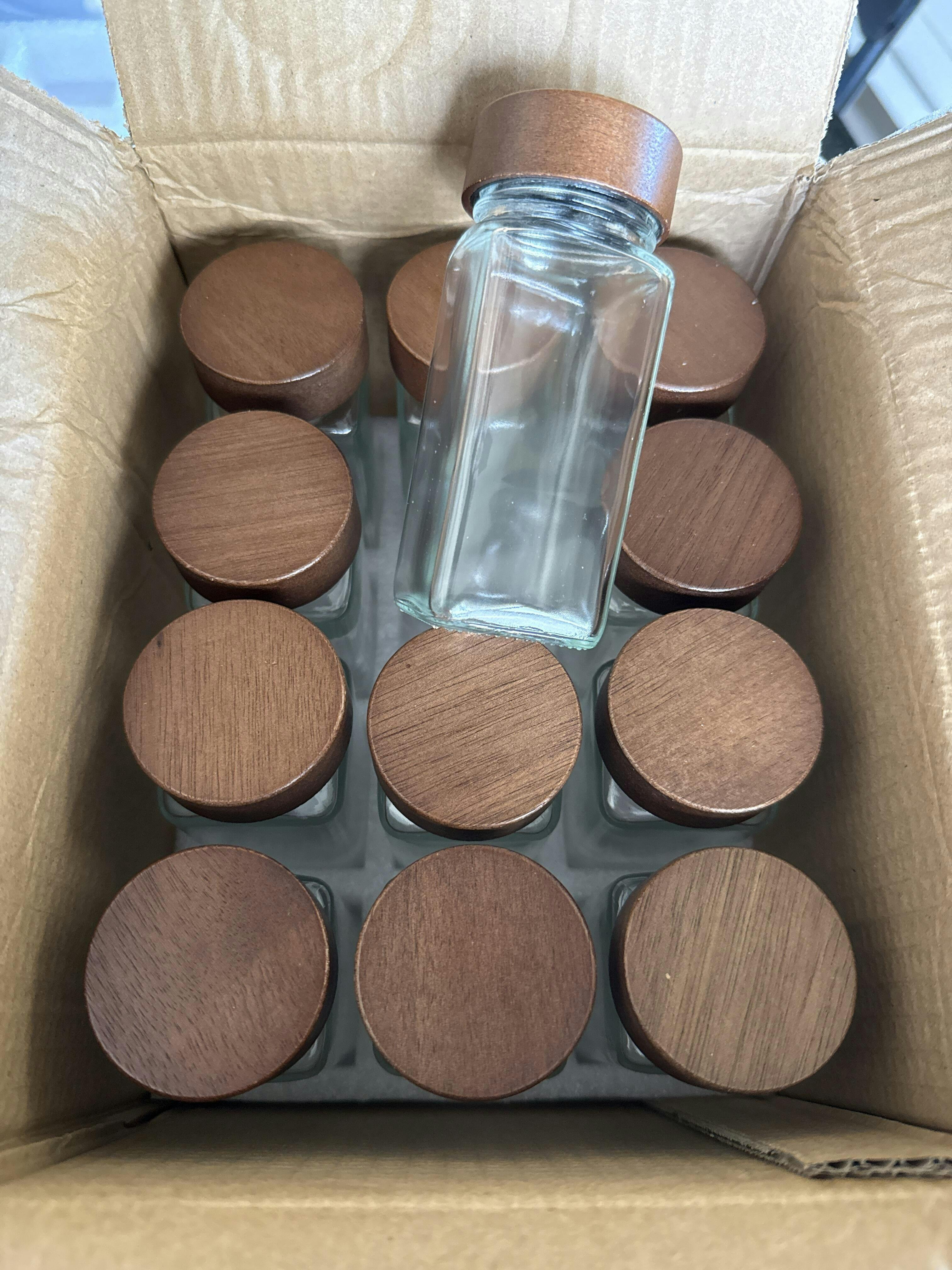 12 PCS Glass Spice Jars With DARK COLOR Wood Cover