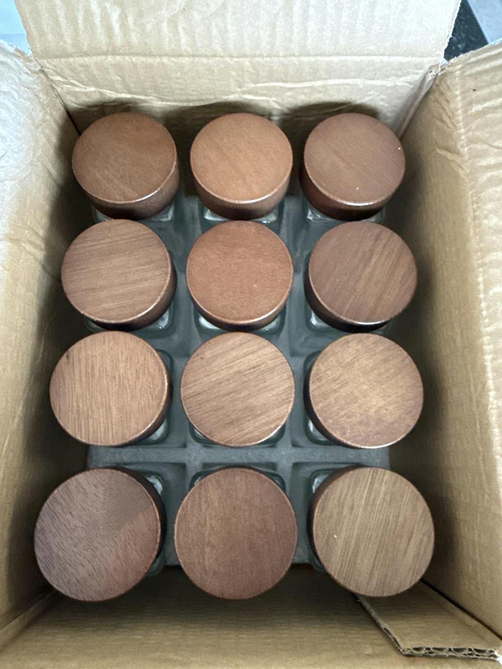12 PCS Glass Spice Jars With DARK COLOR Wood Cover