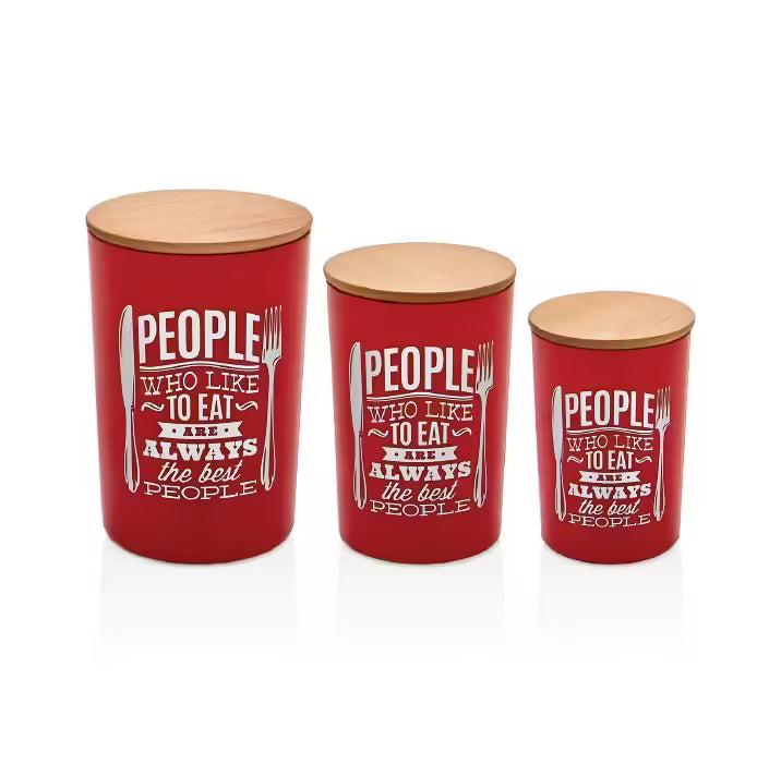 WELLINI Eva Boîte de rangement Ensemble de 3 avec couvercle en bois ( 0,9L / 1,5L / 2,3L )