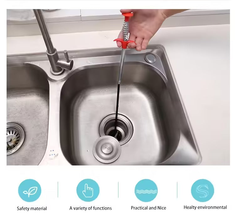 - Utilisation polyvalente : Idéal pour de nombreuses applications, cet outil peut être utilisé dans les salles de bain, les cuisines et les éviers, ce qui en fait un indispensable dans toute maison. Il élimine efficacement les objets étrangers tels que les chaussettes, le papier toilette et les brosses à dents qui peuvent obstruer les canalisations.