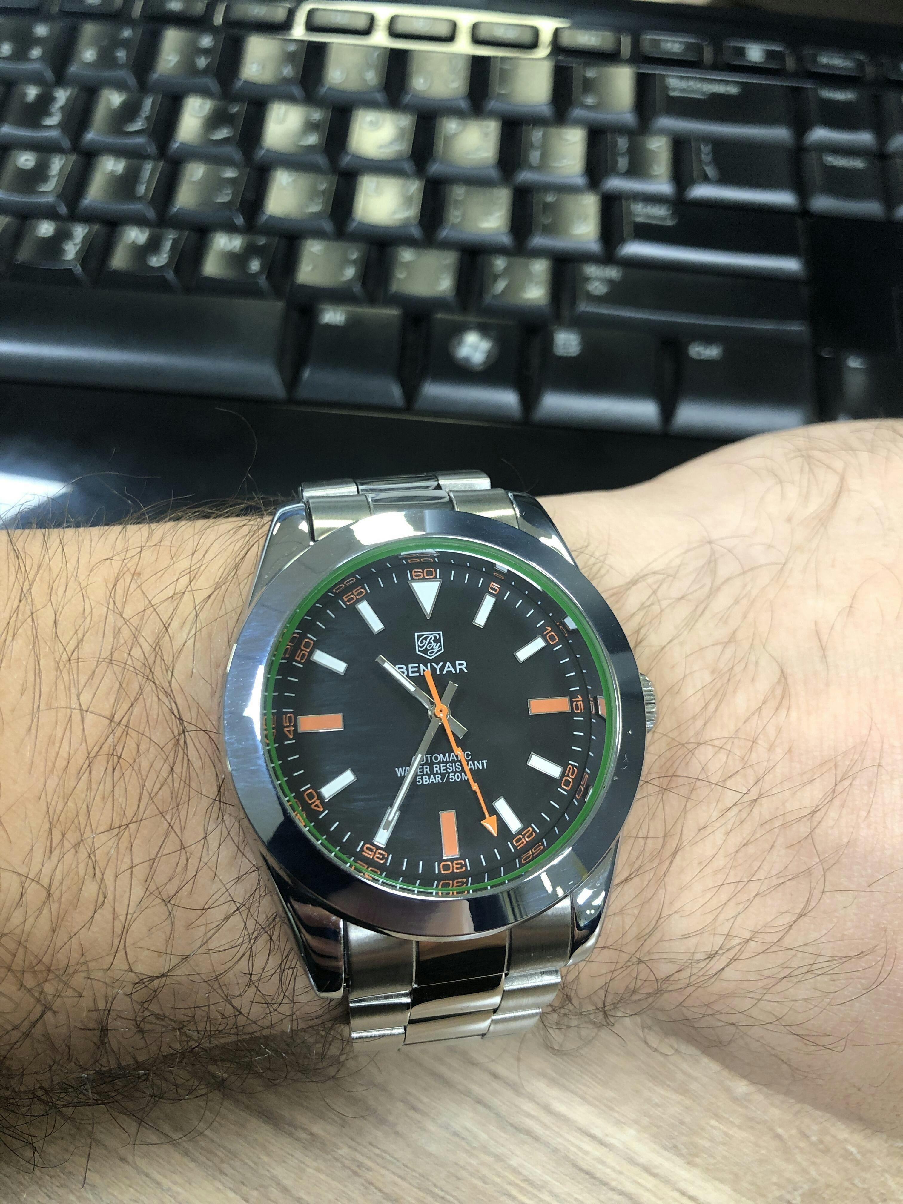 Montre BENYAR pour homme en acier inoxydable à mouvement automatique, modèle BY-5152