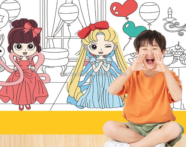 Rouleau de 3 mètres de papier autocollant à colorier pour enfants (300 cm x 38 cm) sur différents thèmes