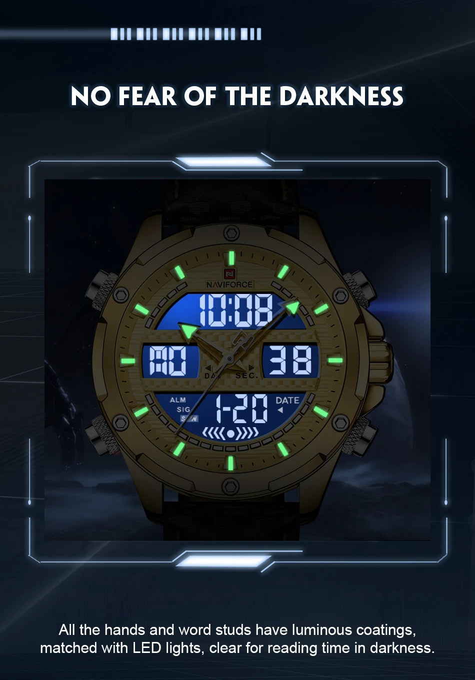 Montre homme NAVIFORCE Digitale x Analogique en cuir noir (NF9194)