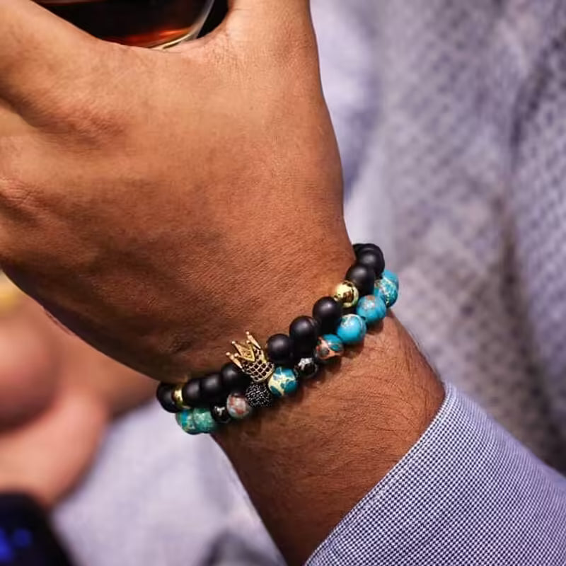 Crown x Disco Ball Handmade 6mm Stone Beaded Bracelet 2pcs Set (EGBT203)