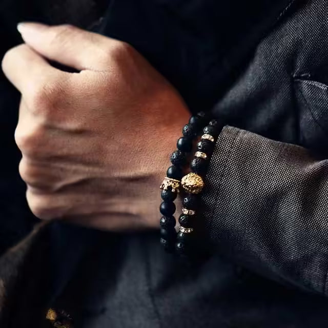Gold Lion 8mm Beads Bracelet Set (EGBT162)